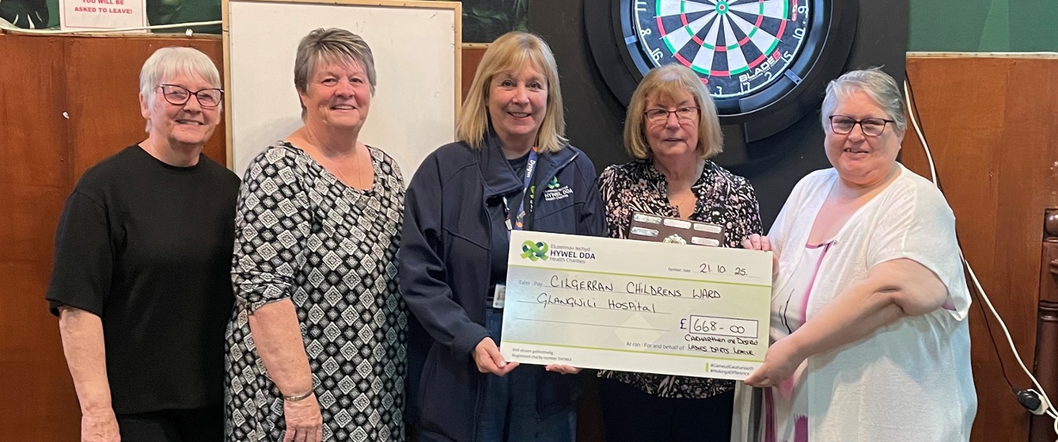 Nicola Jones and the rest of the Carmarthen and District Ladies Winter Darts League chose to raise money for Glangwili Hospital’s Cilgerran Ward by organising a charity evening and raffle, which was held on the 30th September, with all proceeds going to the children’s ward.
