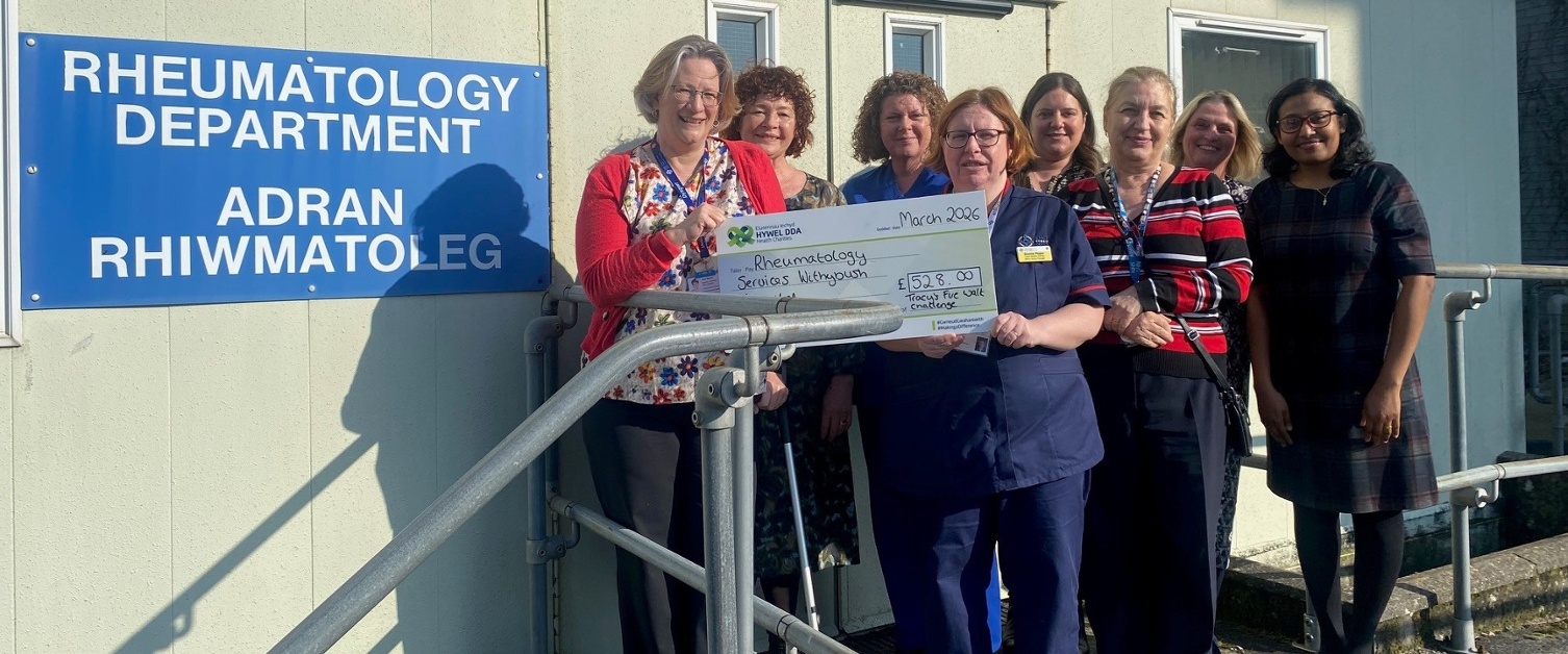 Pictured above: Tracy Beynon with staff from the Rheumatology Team at Withybush Hospital.