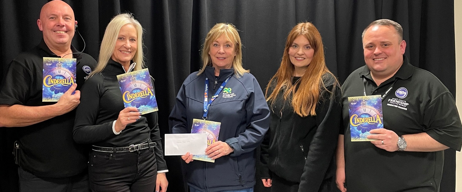 Claire Rumble, Hywel Dda Health Charities Fundraising Officer, attended the cheque presentation evening at the theatre group’s latest show, Cinderella.